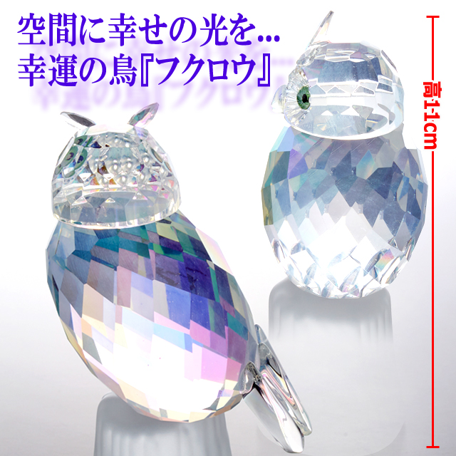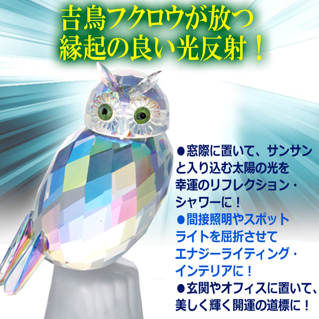 吉鳥フクロウが空間に幸運をもたらす美しきクリスタル光の反射!