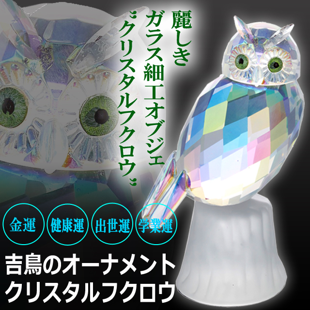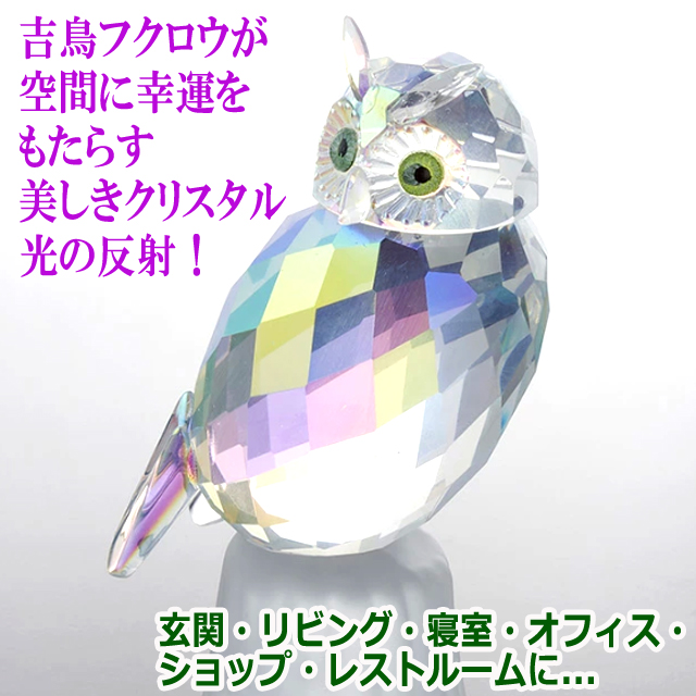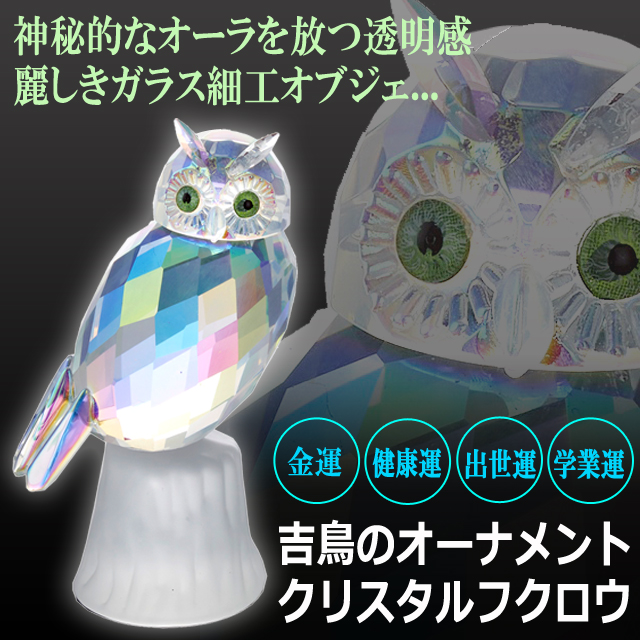吉鳥のオーナメント クリスタルフクロウ 幸運 光の反射 金運 健康運 出世運