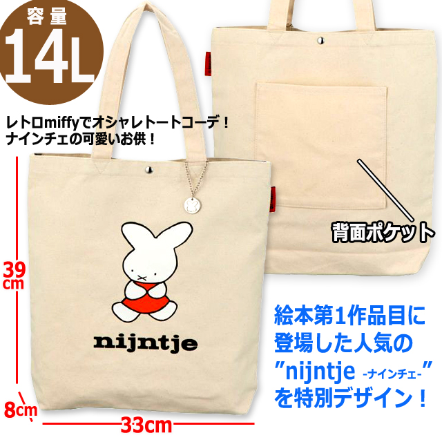 miffy70th ナインチェ帆布トートバッグ14L 背面ポケット チャーム
