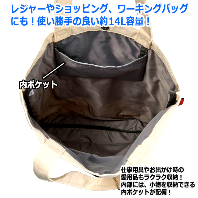 軽くて丈夫なキャンバストート!大きめバックポケット&ナインチェチャーム付き!