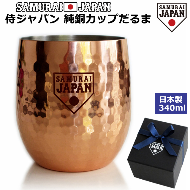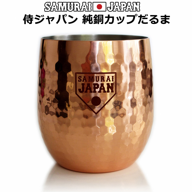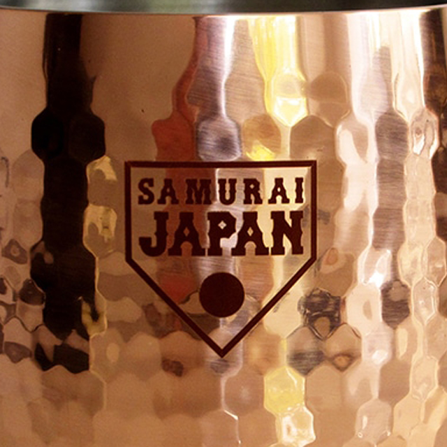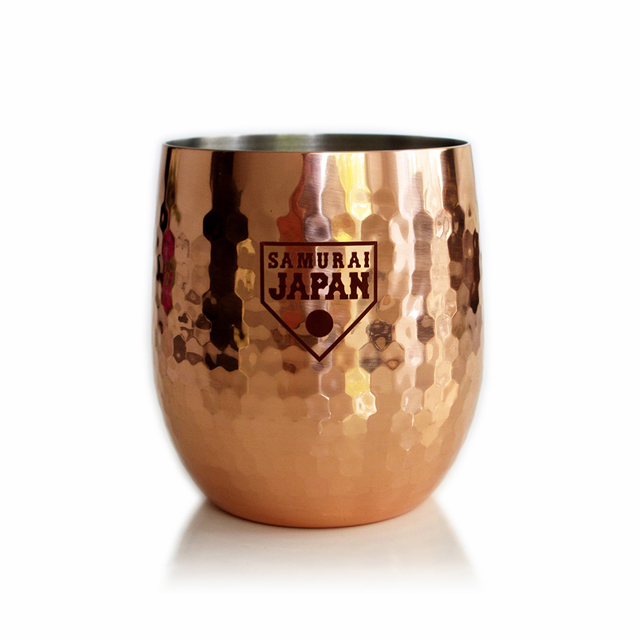 侍ジャパンのロゴデザインを刻印した銅製だるまタンブラー。