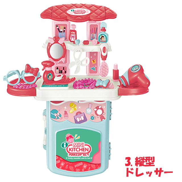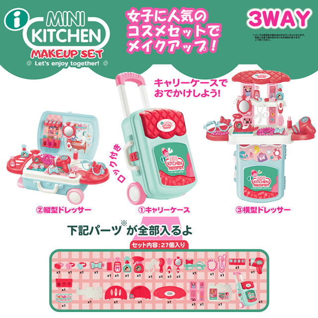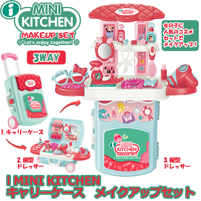 i MINI KITCHEN キャリーケース メイクアップセット 女の子 玩具 おもちゃ なりきりあそび コスメセット 3WAY トイバッグ アイミニキッチン STマーク認証 3才以上 キャリーケース 横型ドレッサー 縦型ドレッサー