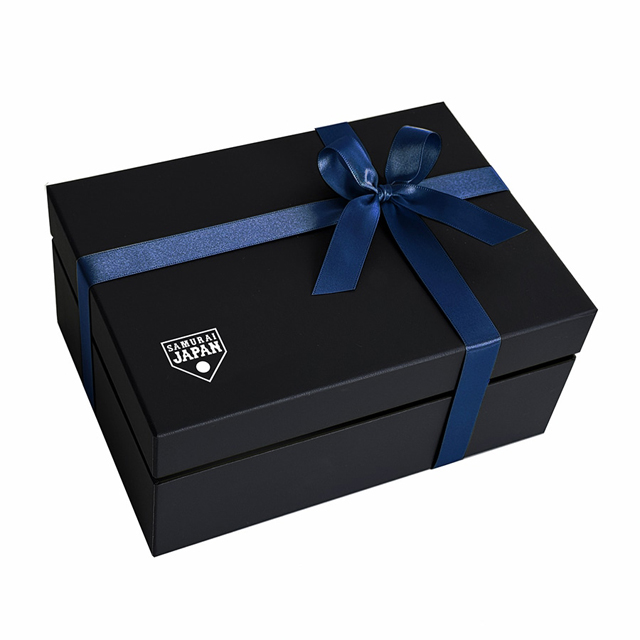 さらに「侍ジャパン」ロゴの箔押しを施した最高級のオリジナルBOXに、紺のリボンをかけてお届けします。