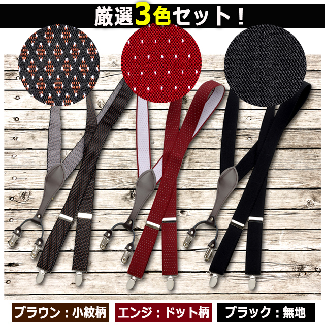 クラシックY型4点留めサスペンダー 厳選3色セット ブラック ブラウン エンジ