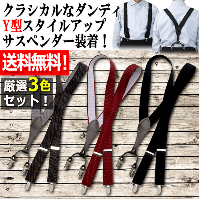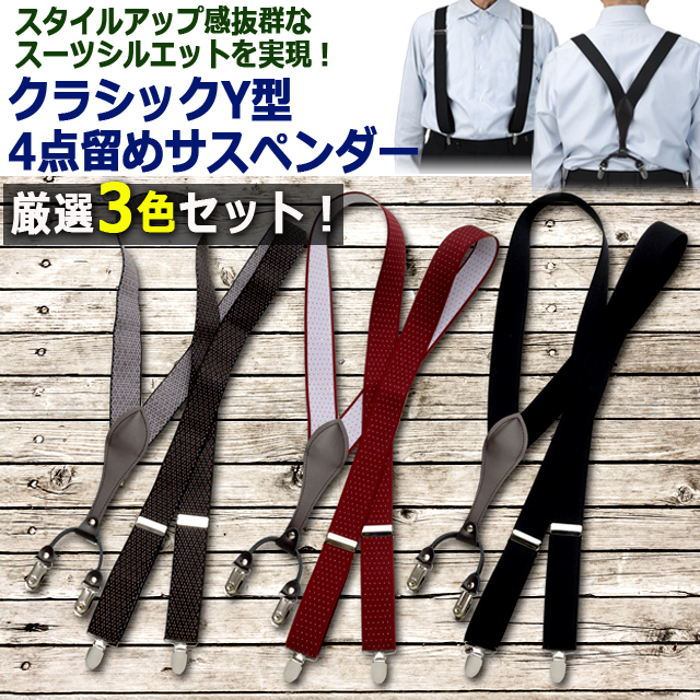 送料無料!クラシックY型4点留めサスペンダー 厳選3色セット