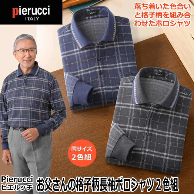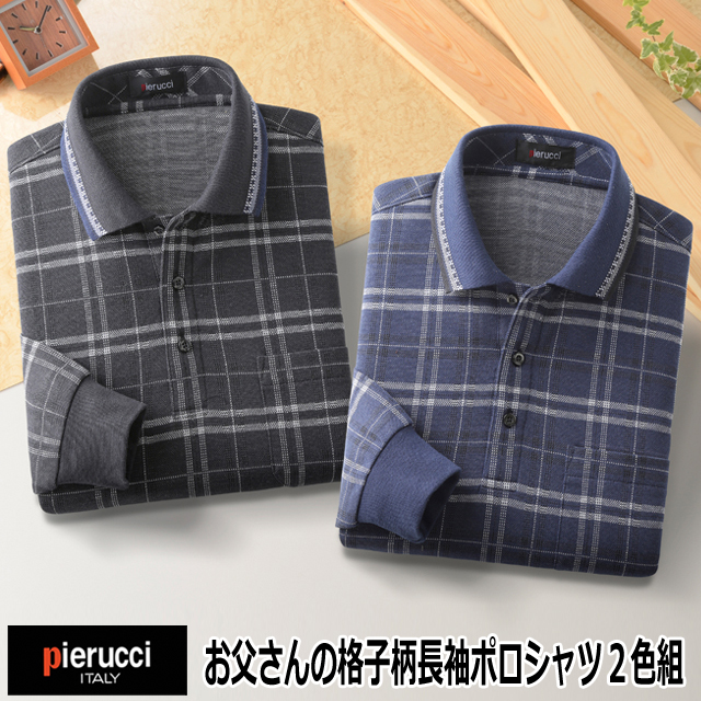 Pierucci(ピエルッチ)お父さんの格子柄長袖ポロシャツ2色組