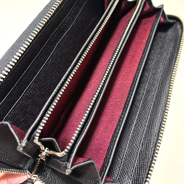中央の小銭入れを中心に両サイドは、札入れ、フリーポケット、カード入れとあつらえられており、たっぷりの収納力を実現しています。