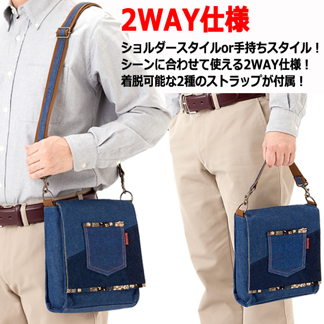 和遊楽 10オンス備後産デニム2WAYショルダーバッグ ポケット フラップ