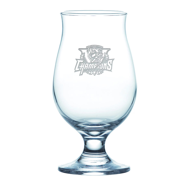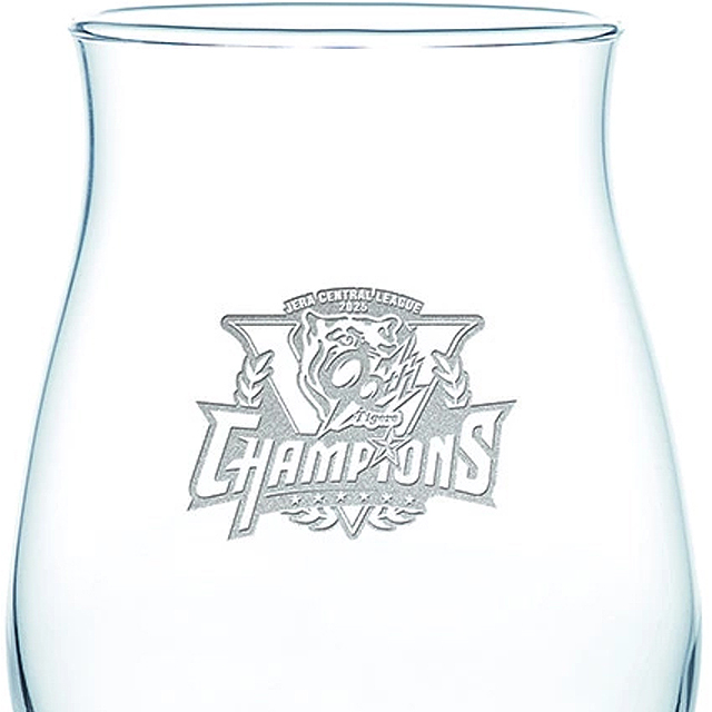 阪神タイガース 2025JERAセ・リーグ優勝記念ロゴを刻印したビアグラス。