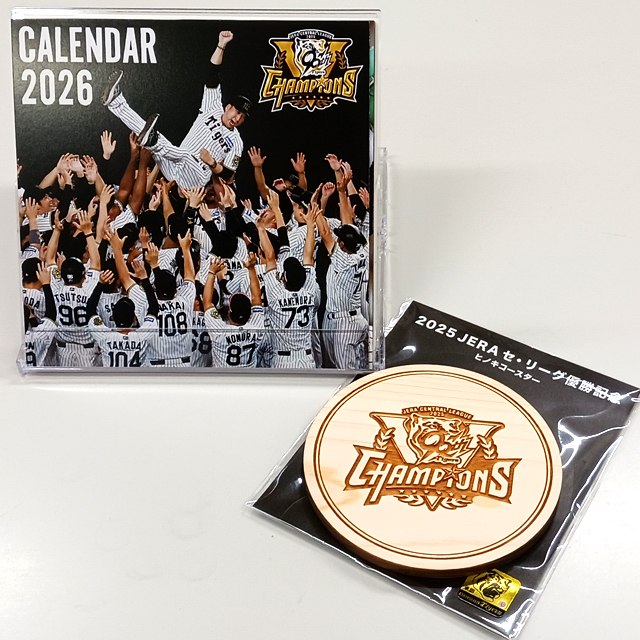 全国の虎党へ捧げる【阪神タイガース公式卓上カレンダー】&【阪神タイガース2025JERAセ・リーグ優勝記念ひのきコースター】をセットにして限定販売!!!