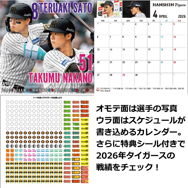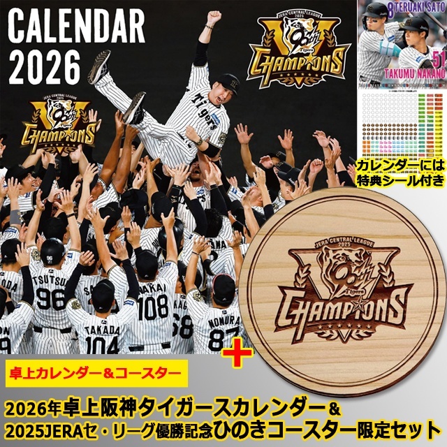 2026年卓上 阪神タイガースカレンダー&2025JERAセ・リーグ優勝記念ひのきコースター限定セット [CL-586-SP2026]