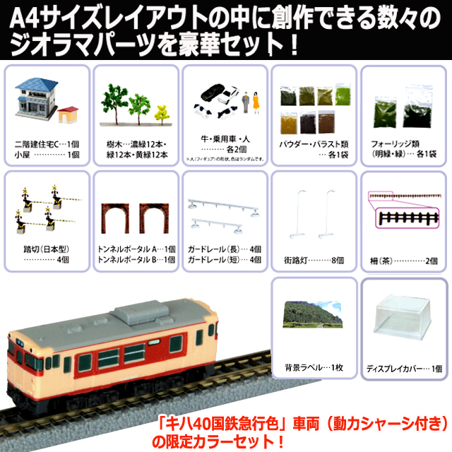 Zショーティー キハ40国鉄急行色+ミニレイアウトトンネルタイプ&ジオラマ情景パーツ86cm拡張5点セット