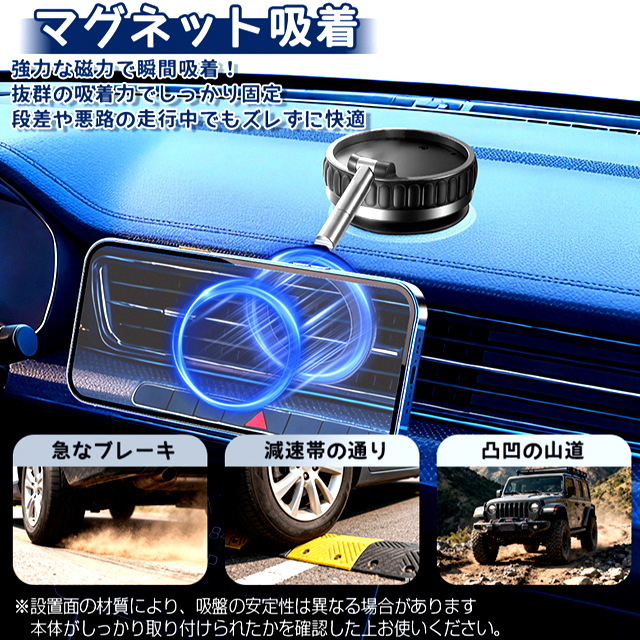 超強力マグネット式ダイヤル真空吸盤スマホスタンド 車内 加速G 振動