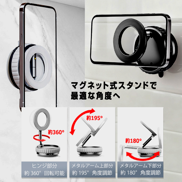 送料無料!超強力マグネット式ダイヤル真空吸盤スマホスタンド