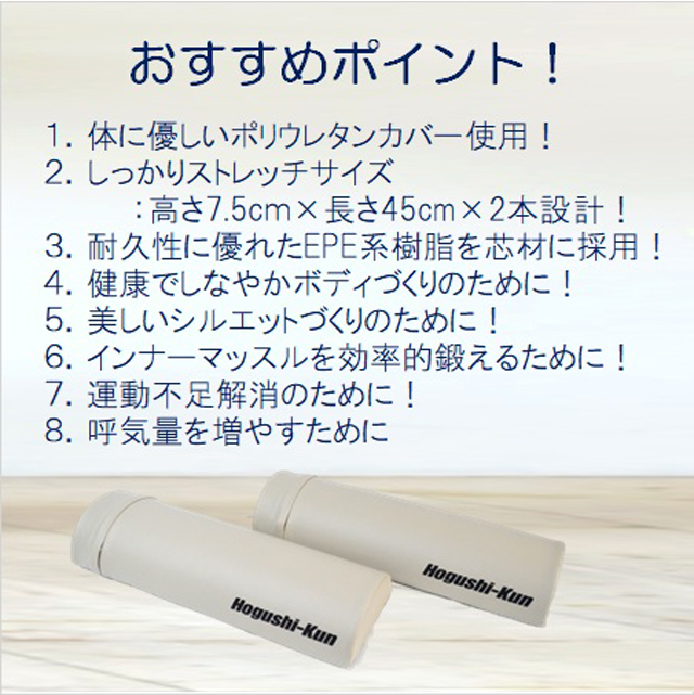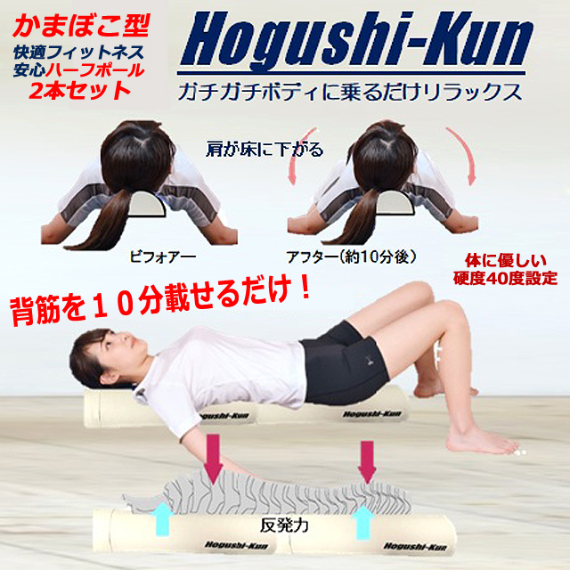 快適フィットネス 安心ハーフポール Hogushi-kun 2本セット かまぼこ型ハーフポール 全身ストレッチ 体ほぐし 背筋ストレッチ 体歪み対策 ストレッチポール ネックストレッチ バックストレッチ ウェストストレッチ 腰痛対策 ポールストレッチ器具