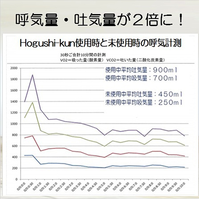 実験データーによると、呼気量・排気量が2倍になる結果も出ています。