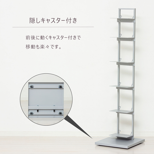 本棚 ブックタワーシェルフ スリム本棚 タワー型収納ラック ブックタワー 狭小スペース家具 省スペース インテリアラック 新生活家具 積読 おしゃれ キャスター付き 縦型収納 ベッドサイド家具 ソファーサイド家具 高さ110cmタワー型本棚 シェルフ家具 おすすめ本棚