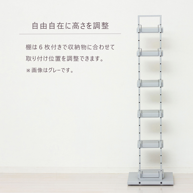 棚は6枚付きで収納物に合わせて取り付け位置を調整できます。