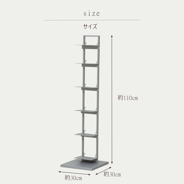 幅30cm、高さ110cmのスリムでコンパクトナタワーシェルフ。