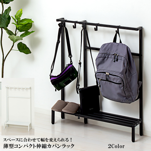送料無料!スペースに合わせて幅を変えられる!薄型コンパクト伸縮カバンラック [KRO-25001]