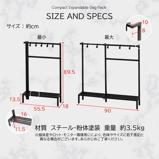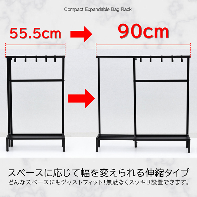 送料無料!スペースに合わせて幅を変えられる!薄型コンパクト伸縮カバンラック