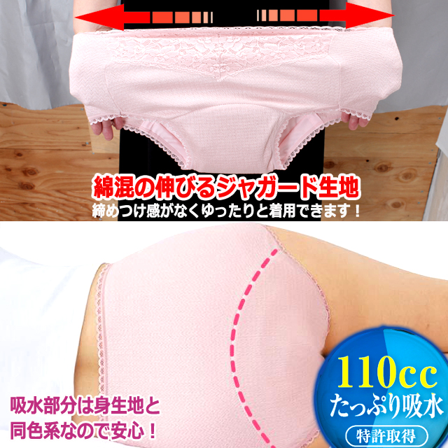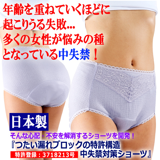 『つたい漏れブロックの特許構造中失禁対策ショーツ』