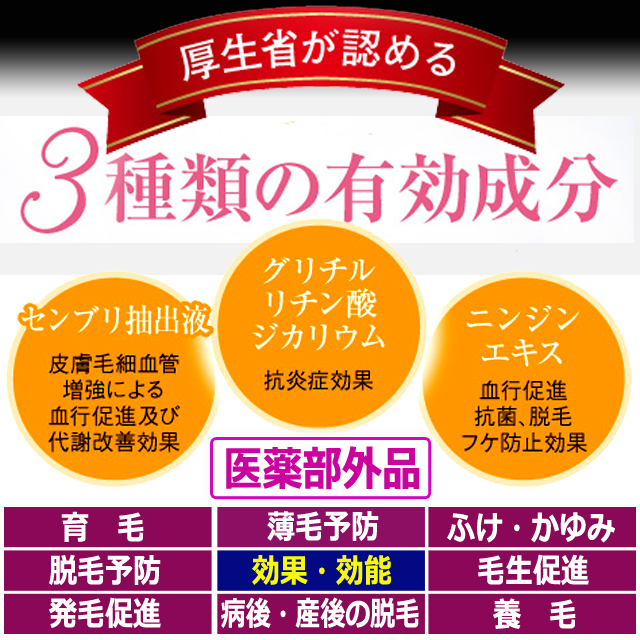■効果・効能:育毛、薄毛、かゆみ、脱毛の予防、