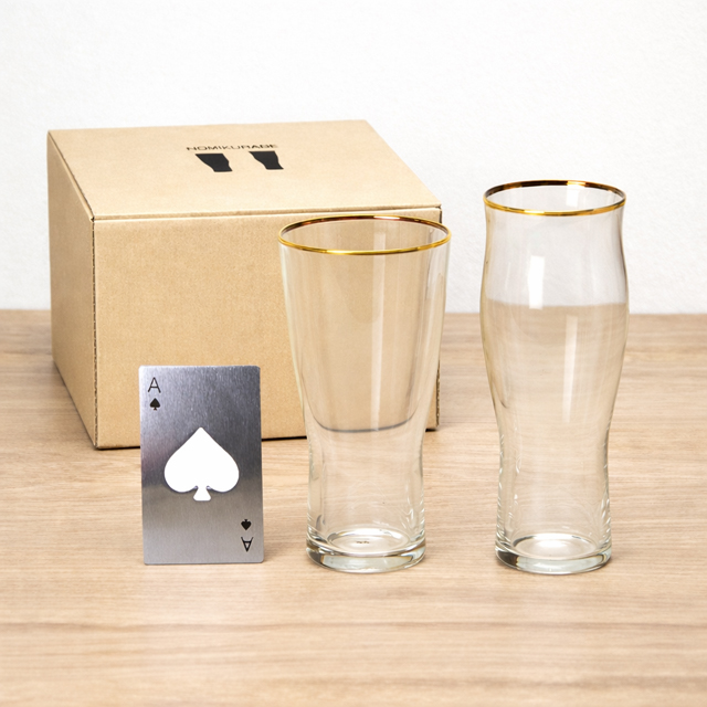 どちらも、しっかりとした金線が施され、高級感を醸し出す極上のビアグラス。