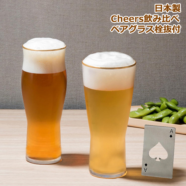 日本製 Cheers飲み比べペアグラス栓抜付 飲み口違うビールグラスセット ボトルオープナー付き 410ml 390ml ビールグラス ビアグラス ギフト 食器ギフト 父の日 母の日 敬老の日 バレンタインギフト クリスマスギフト メンズギフト 男性お誕生日