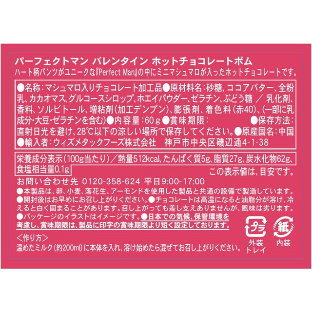 パーフェクトマン バレンタイン ホットチョコレートボム バレンタイン 限定 マシュマロ入 チョコ ギフト 面白い 友チョコ マイチョコ ファミチョコ 変わり種 PerfectMan ユニーク スイーツ 映えスイーツ 遊び心 ハート柄パンツ