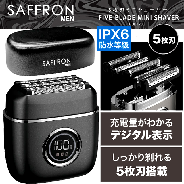 SAFFRON MEN手のひらサイズ!しっかり剃れる5枚刃シェーバーDIGITAL [ITO-HDL-1700]