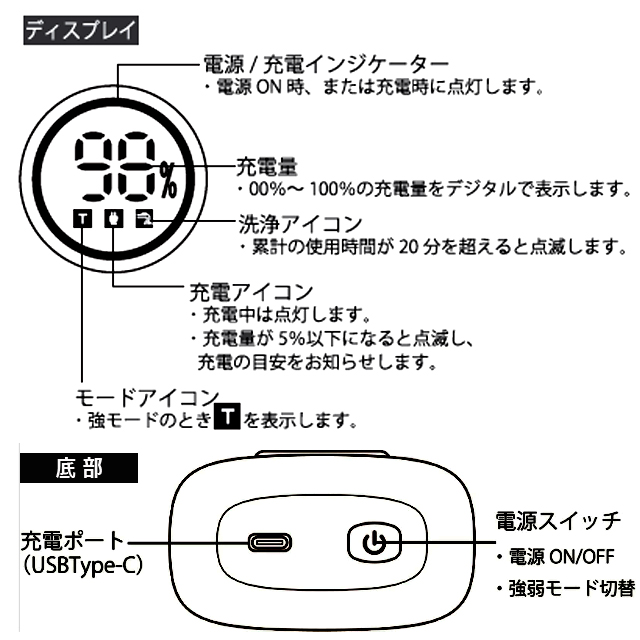 | 仕様 | ■サイズ:約幅7×高7.5×奥4cm ■重量:約144g ■材質:[本体]ABS、ステンレス [外刃]ニッケル合金 [内刃]ステンレス [キャップ]ABS ■電源:DC5V/1A(USBType-C) ■充電バッテリー:リチウムイオン電池900mAh ■定格消費電力:5W ■充電時間:約100分 ■使用時間 ■モード:弱/強 ■防水等級:IPX6 ■使用時間:[弱]約100分 [強]約80分 ■機能:充電量表示(0-100%)、洗浄アイコン(20分を超えると点滅)、 誤動作防止ロック、マグネット式刃部、交流式(充電しながらの使用可) ■付属品:キャップ、充電ケーブル(Type-C長さ約80cm)、ブラシ、取扱説明書 ■発売元:株式会社ヒロ・コーポレーション ■保証:6ヶ月 |