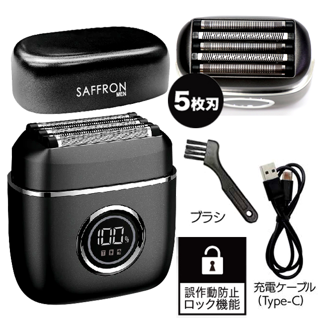 SAFFRON MEN手のひらサイズ!しっかり剃れる5枚刃シェーバーDIGITAL 充電式