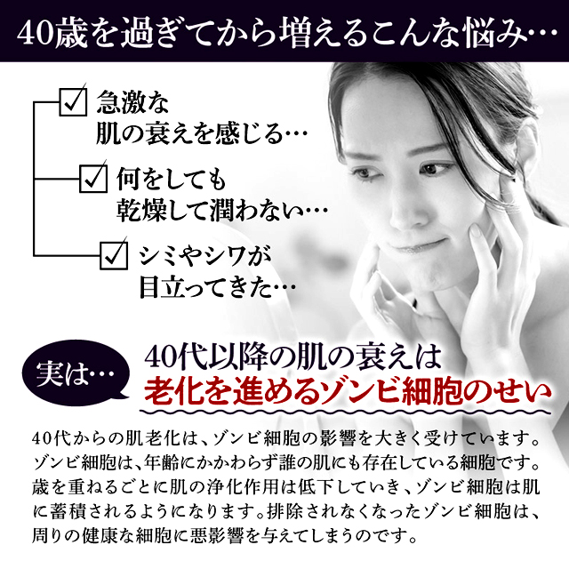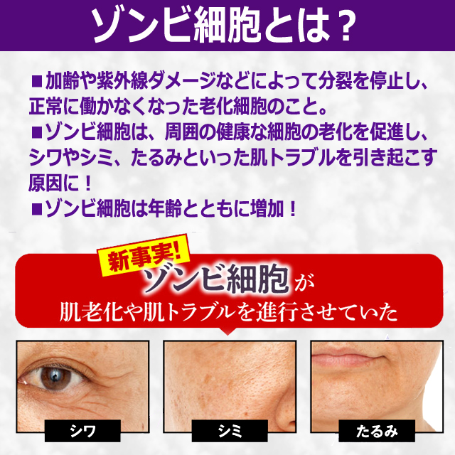 肌の衰えやダメージを進行させるゾンビ細胞トリプル処方!