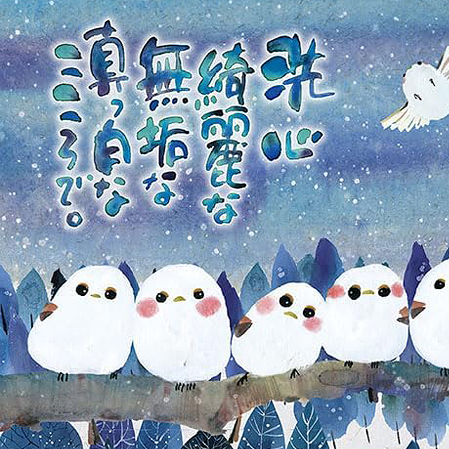 雪深い冷たさも感じさせるダークブルーな世界の中に、浮き立つように輝く真っ白な姿は、まさに穢れのない純真無垢な心を大切にと伝えています。