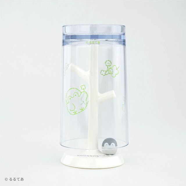 容量90mlの小さなうがい用コップと、フィギュアがちょこんとのったスタンドのセットです。