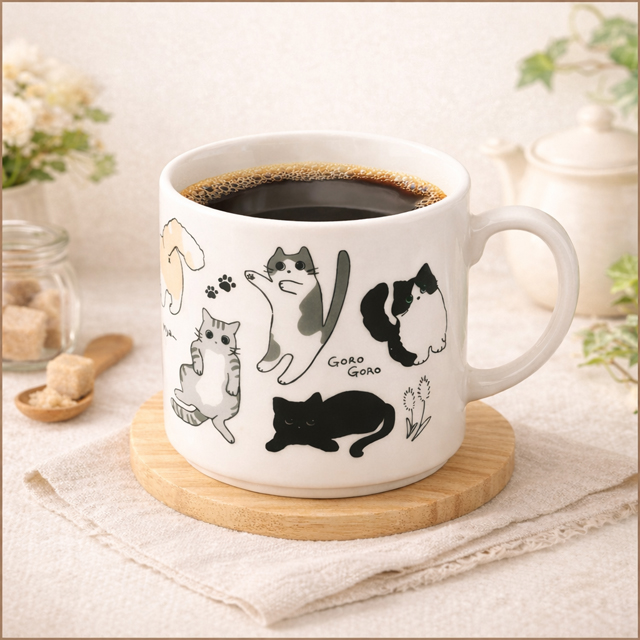 ほのぼのネコちゃんたちに癒される、日本製350mlデイリーマグ。