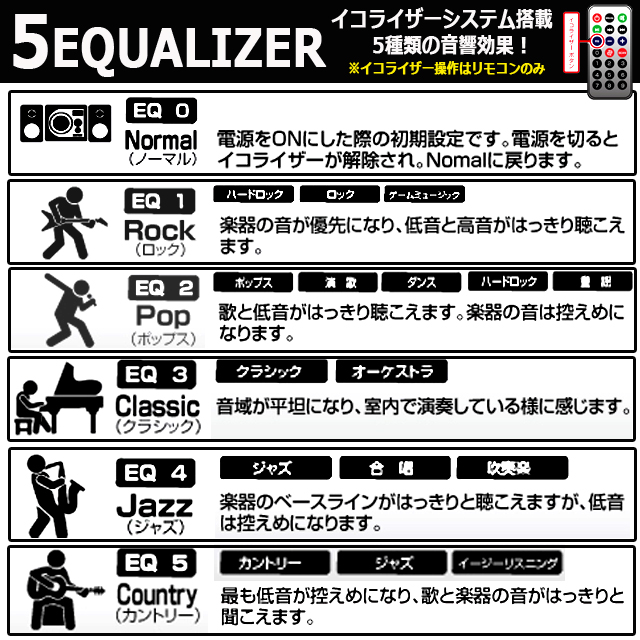 ■イコライザー:Normal/Rock/Pop/Classic/Jazz/Country