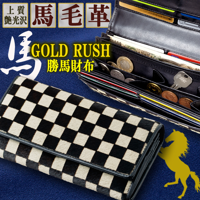 GOLDRUSH市松模様馬毛革かぶせタイプロングウォレット ゴールドラッシュ