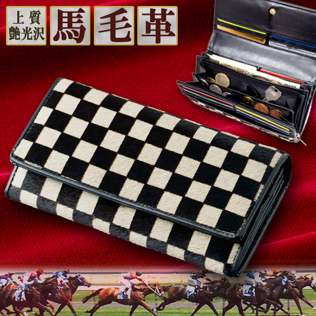 GOLDRUSH市松模様馬毛革かぶせタイプロングウォレット