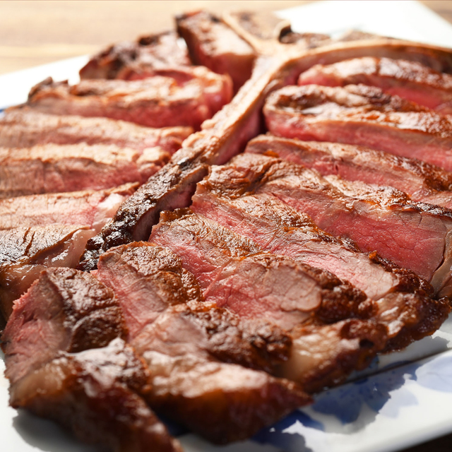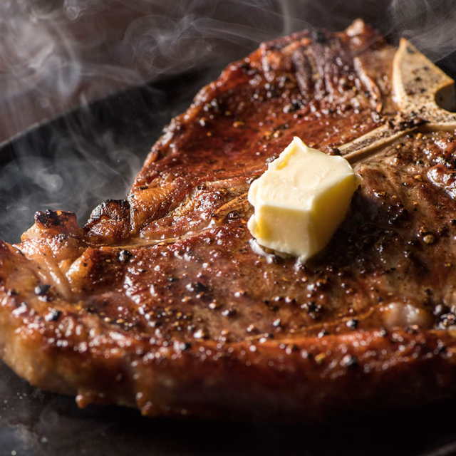 T字の骨を挟んでサーロインとヒレが向かい合う夢の部位!「Tボーン」!!