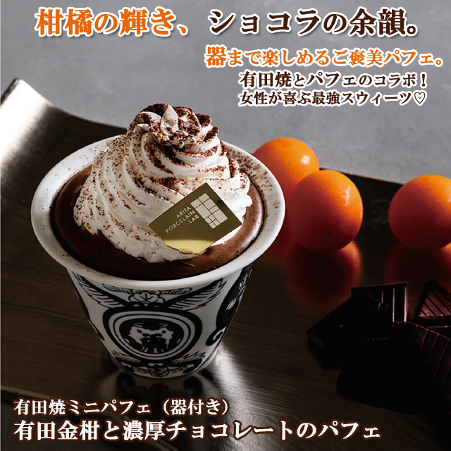 有田焼ミニパフェ(器付き) 有田金柑と濃厚チョコレートのパフェ 食器付きスイーツ お取り寄せ ギフト 佐賀県産 ご褒美スイーツ ホワイトデー 母の日 センスのいいギフト 器も楽しめる プレゼント 贈り物 アリタポーセリンラボ 冷凍クール便