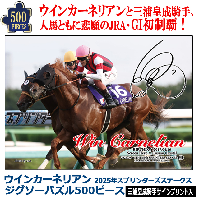 ウインカーネリアン 2025年スプリンターズステークス ジグソーパズル 500ピース 三浦皇成騎手サイン 競馬 競走馬 38×53cm ジグソーのみ G1初制覇 Win Carnelian 中央競馬
