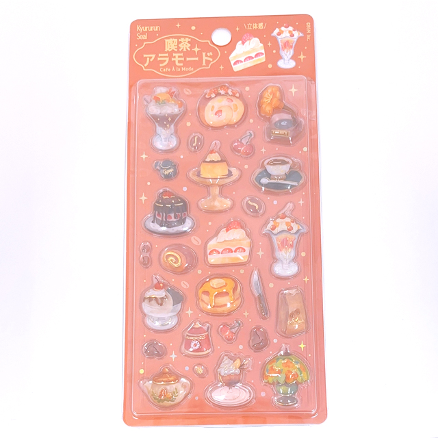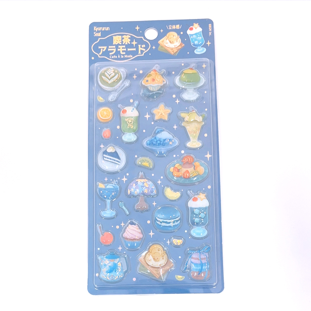 きゅるるんシール喫茶アラモード3種セット 立体 シール 3枚組 かわいい ぷっくり つやつや 交換 シール帳 3D 平成 シール 交換 デコ 女子 平成 女児 コレクション 子ども ギフト メルシー ケーキ プリン ブリュレ ステンドグラス シェル