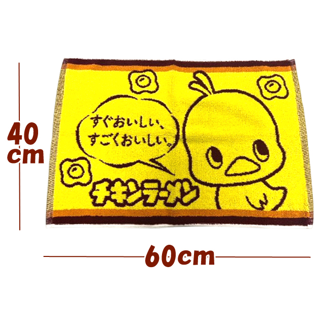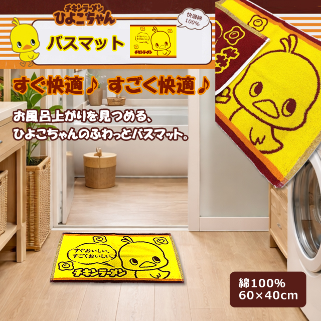 チキンラーメン ひよこちゃん バスマット 綿100% 60×40cm かわいい キャラクター バスグッズ 可愛い 風呂上り すぐおいしい♪すごくおいしい♪ 脱衣所 洗面所 黄色 イエロー