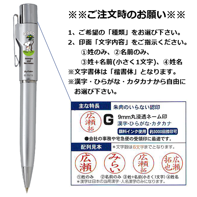 スヌーピースタンペンGノック式Ver.25 PEANUTS SNOOPY ハンコ付きネームペン オリジナルネーム印鑑付ボールペン ネーム印付きボールペン スヌーピー公式グッズ スヌーピー文具 アニメキャラクターグッズ 黒ボールペン ワンノック式 ギフト文具 お誕生日祝いギフト