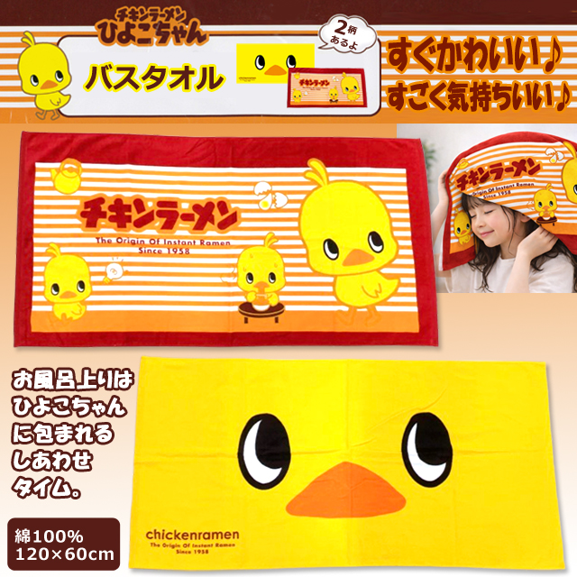 ・・・で有名な日清チキンラーメンのキャラクター”ひよこちゃん”が、ふわふわのバスタオルになりました。