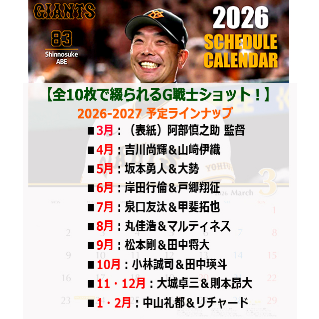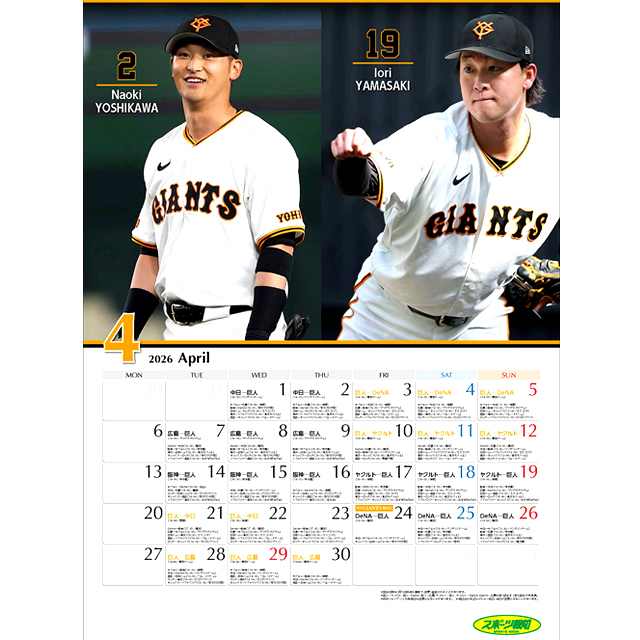 ジャイアンツ&プロ野球ファンの為の2026カレンダー!