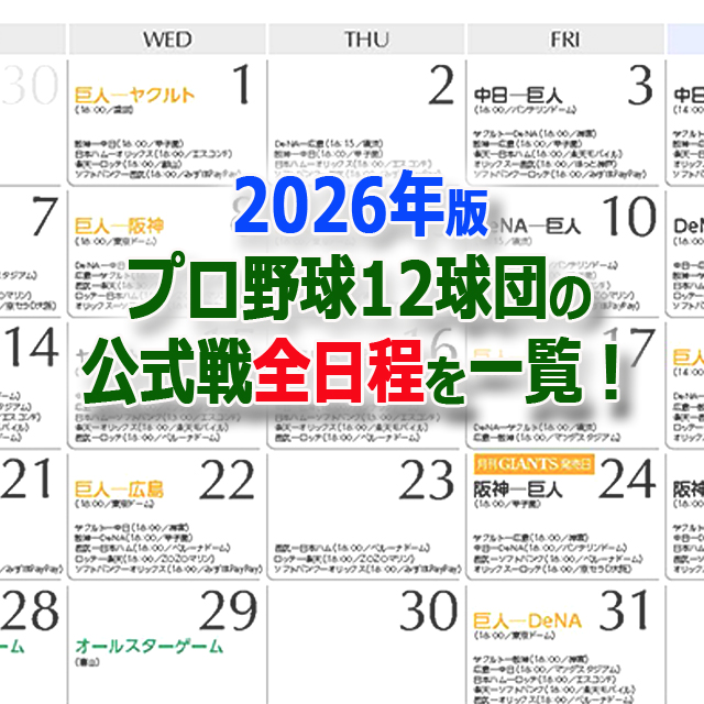 【プロ野球年間スケジュールinカレンダー!】