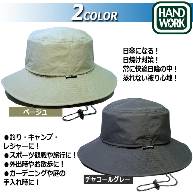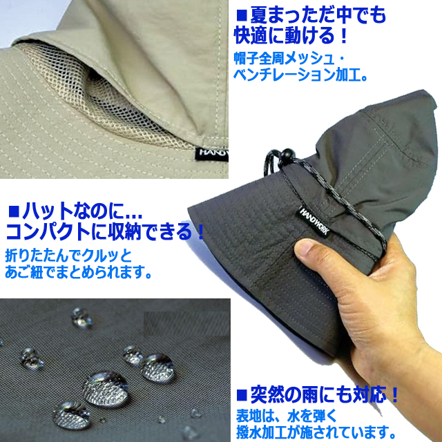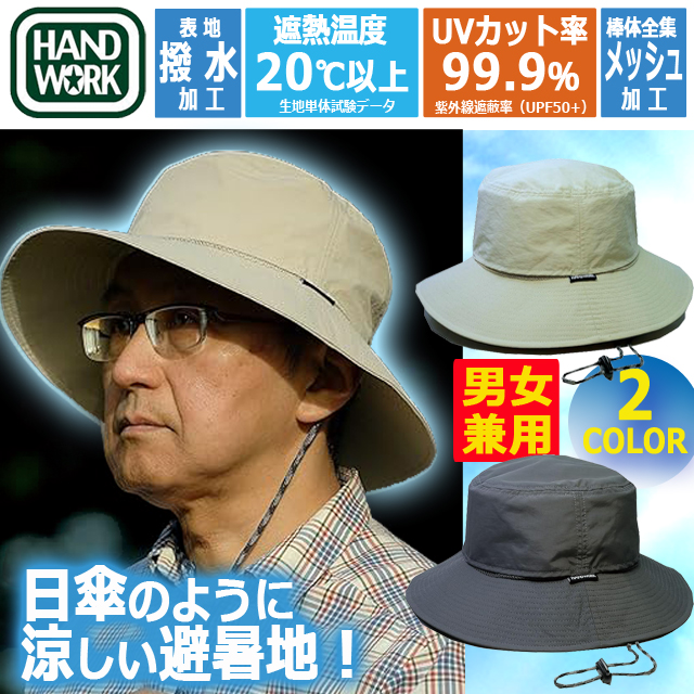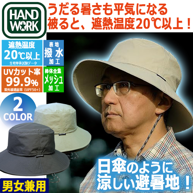 HAND WORK ハンドワーク被る日傘 遮光クールハット 男女兼用 遮熱率 炎天下